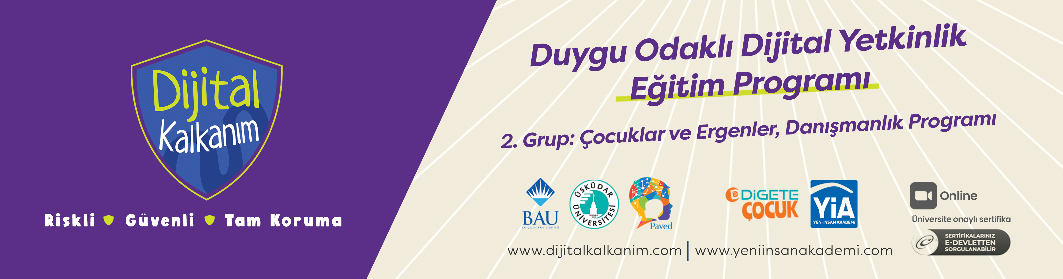 2.Grup: Dijital Kalkanım Duygu Odaklı Dijital Yetkinlik Eğitim Programı- Çocuklar ve Ergenler, Danışmanlık Eğitimi (Ekim 2025'te açılacaktır.)