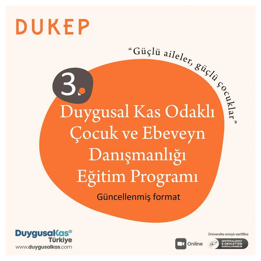 DUKEP "Duygusal Kas Odaklı Çocuk ve Ebeveyn Danışmanlığı" 3. Eğitim Programı (30 Kasım 2025) 15 Ekim'de ilan edilecektir.