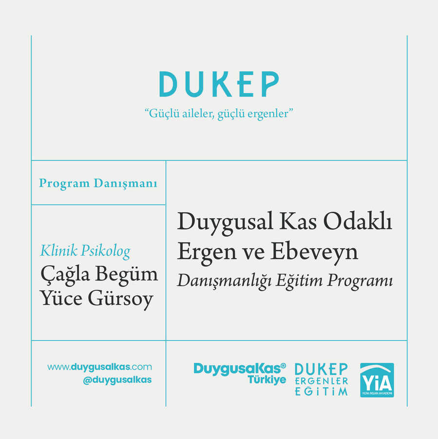 DUKEP "Duygusal Kas Odaklı Ergen ve Ebeveyn Danışmanlığı Eğitim Programı" (30 Ocak 2026) 15 Ekim'de ilan edilecektir.